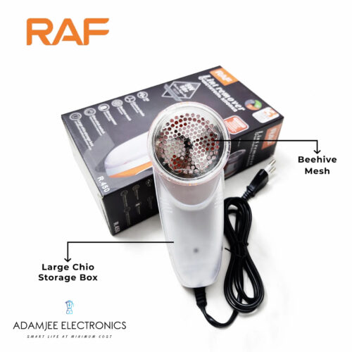 Keep your clothes neat and fresh with the RAF Lint Remover, a practical fabric shaver and fuzz cleaner machine designed for safe and effective lint removal. It easily removes fabric balls, fuzz, and pilling from sweaters, shawls, coats, blankets, upholstery, and everyday garments, making it ideal for regular household use in Pakistan.
